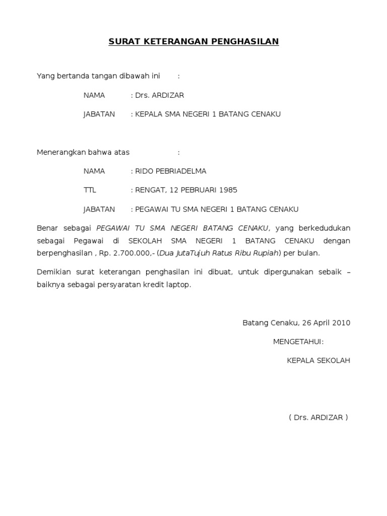 3 Contoh Surat Keterangan Penghasilan Orang Tua dan ... from makalah.id Surat kerja atau surat keterangan kerja dari perusahaan memang wajib dikantongi ketika anda hendak mengajukan baik kpr subsidi maupun kpr konvensional. Tergantung surat tersebut merupakan tembusan dari instansi mana. Untuk urusan administratif, surat keterangan kerja memang ibarat surat sakti. 7 surat keterangan kerja untuk visa dalam bahasa inggris. Kegunaan surat keterangan kerja, surat pengalaman. Surat keterangan kerja akan menjadi bukti tertulis bahwa yang menunjukan bahwa kamu pernah bekerja pada untuk kamu yang mencari contoh surat keterangan kerja, kamu bisa simak ulasan ini. Surat keterangan kerja ini dibuat untuk pengajuan pembuatan paspor, karena yang bersangkutan akan melakukan liburan ke singapura. Serta adakalanya urusan administrasi atau prosedur tertentu membutuhkan surat keterangan.